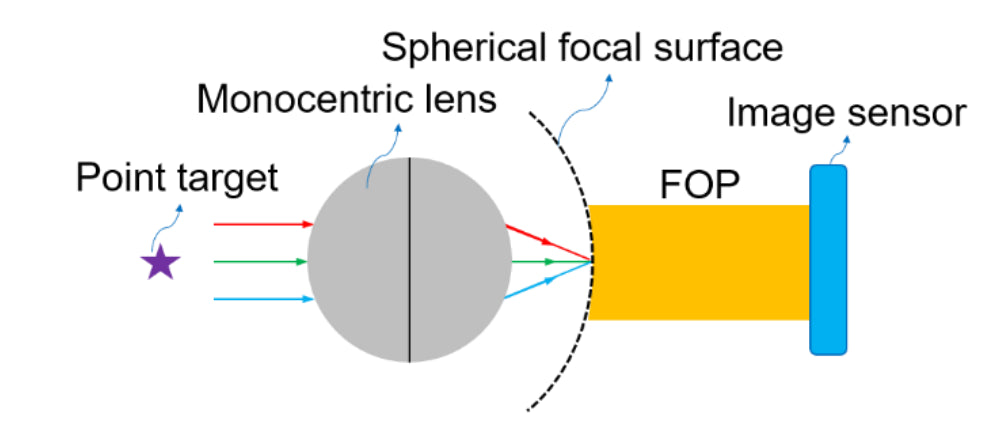 - The FOP is used to couple this spherical focal surface to a flat image sensor.